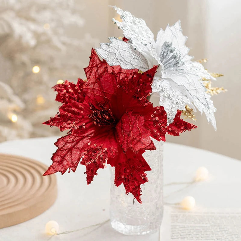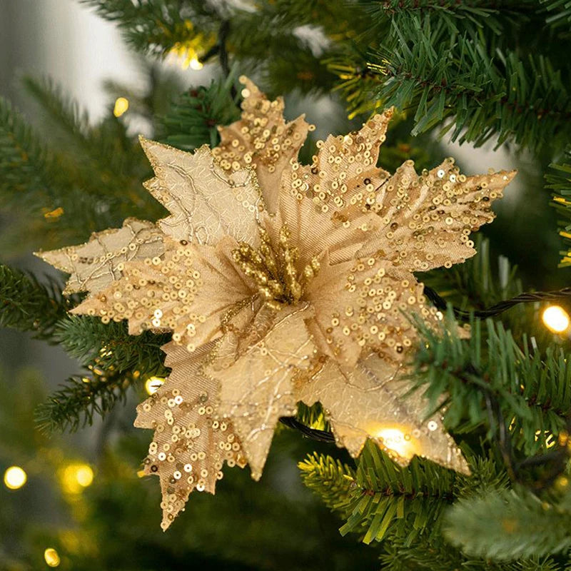 Glitter Sequin Christmas Flower Artificial Flower for Christmas Tree Decorations Big Xmas Fake Flower New Year Home Decor
